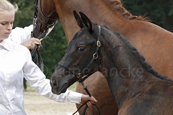 Feuerkranz, bestes Stutfohlen und eine rappfarbene Tochter des Reservesiegers (NMS 2007) Editorial, aus der doppelt prämierten Gribaldi-Tochter Feuertanz, erhielt den Titel der Reservesiegerin zugesprochen. Züchter ist Familie Pieters-Oostra aus dem niederländischen Borger. Feuerkranz bestach durch Elastizität, Mechanik und Raumgriff in den schwungvollen Gangarten und einen sehr guten Schritt.